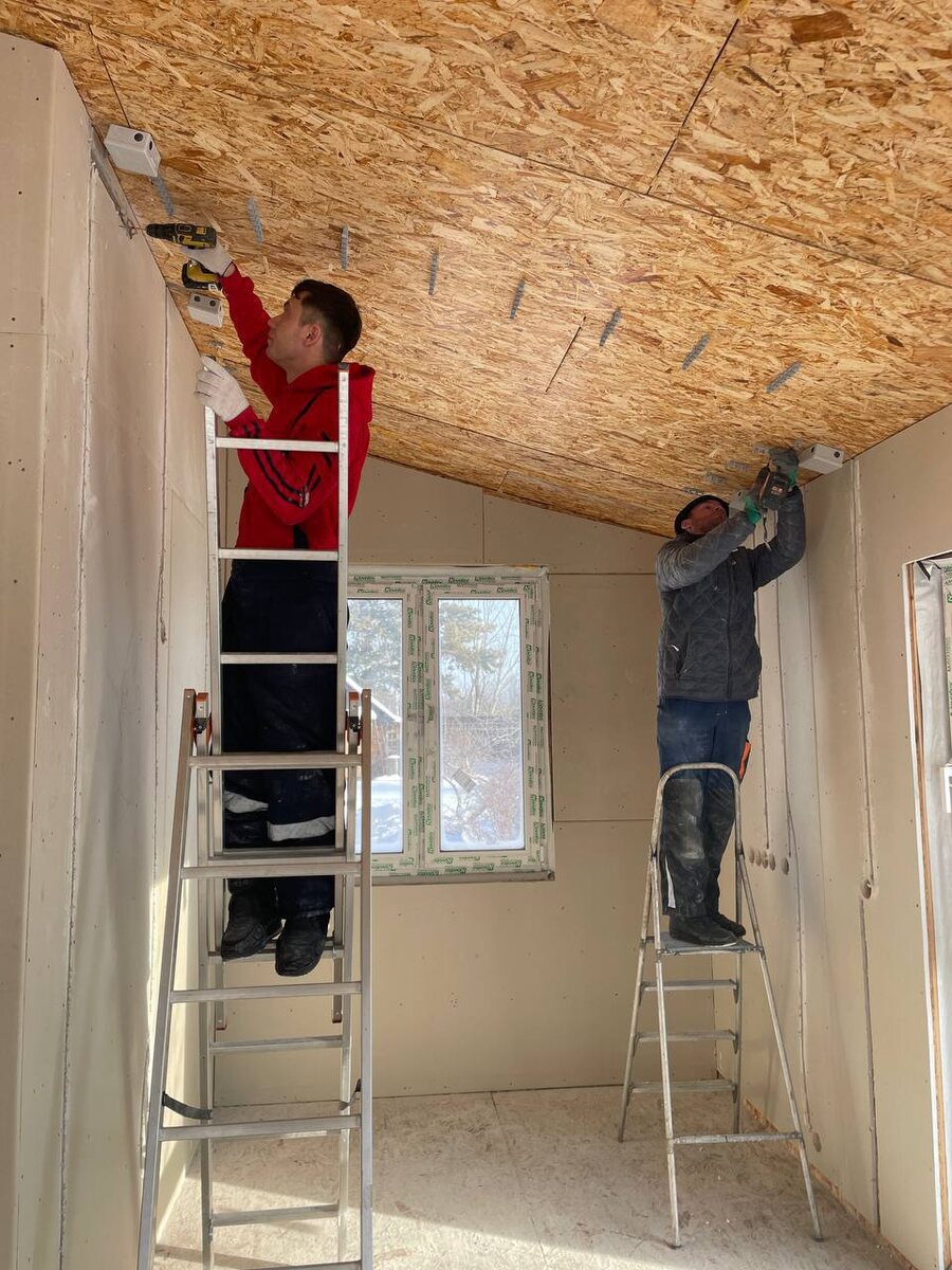 Выполняются внутренние работы, установка ГКЛ, подготовка и монтаж электрики