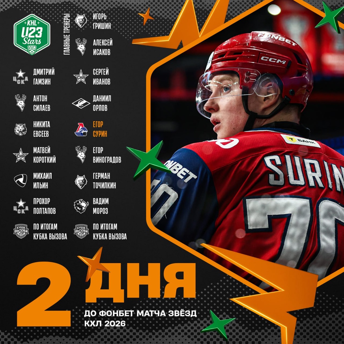 Впервые на #KHLAllStar сыграет целая команда из молодых звезд до 23-х лет — KHL U23 Stars. Увидим их в деле в эти выходные на Фонбет Матче Звезд КХЛ 2026!