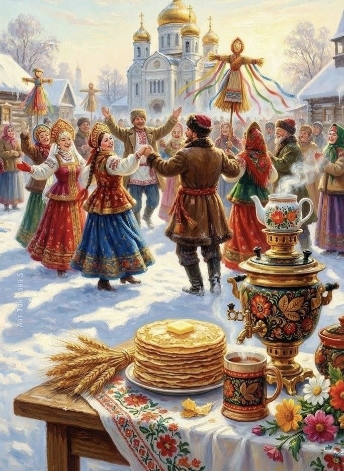 Эта же круглая форма делала блин идеальным символом вечного цикла жизни, смерти и возрождения. Как солнце «умирает» вечером и «рождается» вновь утром, так и душа предков не исчезает, а продолжает свой путь. Блин считался «пропуском» или угощением для душ ушедших родственников, которые, как верили, навещали живых именно на Масленицу — в пору всеобщего обновления.