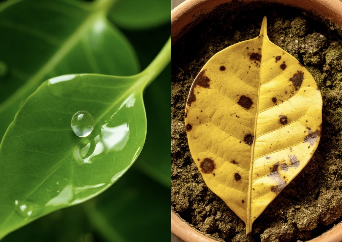2. Листья заблестели… но начали желтеть. Да, первоначальный эффект был! Листья стали глянцевыми, жирно блестящими. Но через две недели на этой «красоте» появились желтые, маслянистые пятна. Поры забились. Фотосинтез замедлился.