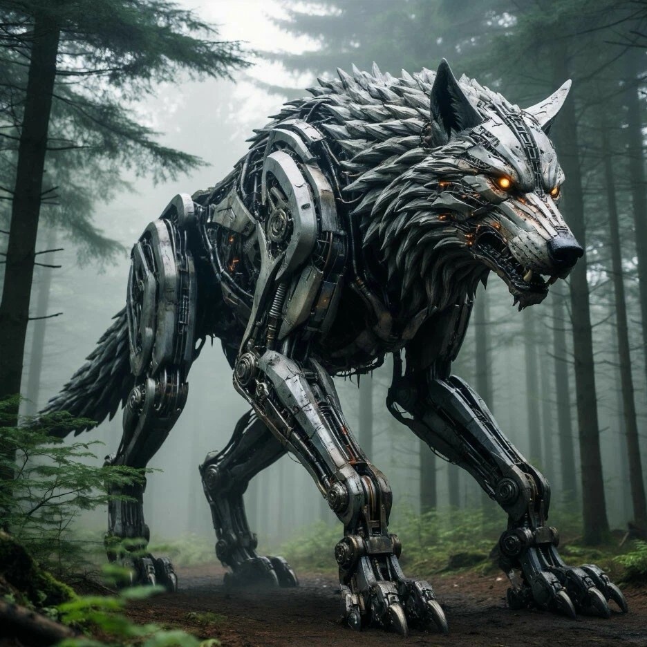Навстречу призраку двигался огромный механический волк. Он шагал, легко ломая молодые деревья, его лапы оставляли на земле глубокие следы. Металлические шестерни зверя скрежетали друг о друга, клапана выпускали едкий пар.