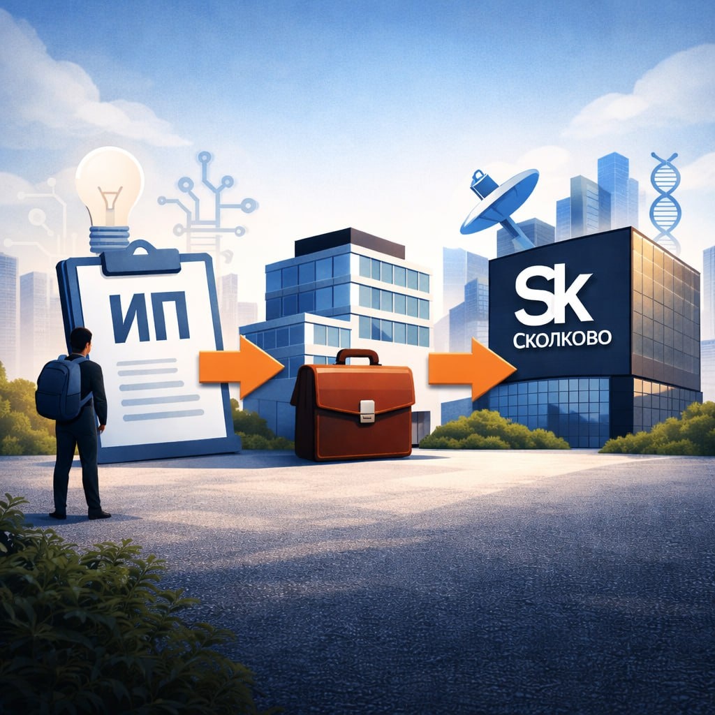 Тема «я ИП, делаю технологию, могу ли зайти в Сколково и платить меньше налогов?» всплывает почти на каждом разборе. Многие разработчики и фаундеры начинают именно как ИП: пишут код, делают биотех, пилят железо, а потом узнают про льготы и хотят просто «добавить себе статус резидента». Здесь важно сразу снять иллюзии: войти в Сколково напрямую в форме ИП нельзя. Но это не значит, что дорога закрыта совсем — просто путь будет через создание компании. Почему закон «режет» ИП на входе Статус участника проекта «Сколково» описан в 244‑ФЗ и в отдельной главе НК РФ. Там черным по белому написано: участником может быть только российское юридическое лицо, которое ведет деятельность в рамках проекта. Если разложить по пунктам: Организационная форма. Нужна именно компания (ООО, АО, НИИ, АНО и т.п.). ИП — это физлицо без образования юрлица, формально к этой категории не относится. Реестр. Резиденты Сколково попадают в реестр юрлиц (ЕГРЮЛ). ИП учитываются в другом реестре — ЕГРИП, и нормы о ль