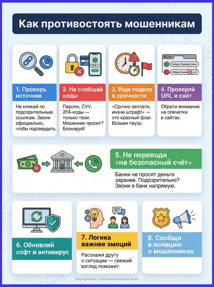 В инфографике наглядно рассказываем, как распознать злоумышленников. Поделитесь этой полезной информацией с родными и друзьями.