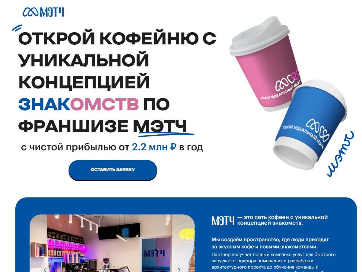 Коротко о бизнес плане, подробнее у нас на сайте (ссылка ниже): МЭТЧ — это сеть кофеен to-go, в которых знакомство людей встроено в сам продукт. В офлайне гости выбирают формат общения через простую визуальную механику (стаканы, QR-код): это снимает неловкость первого шага и делает знакомство социально безопасным.