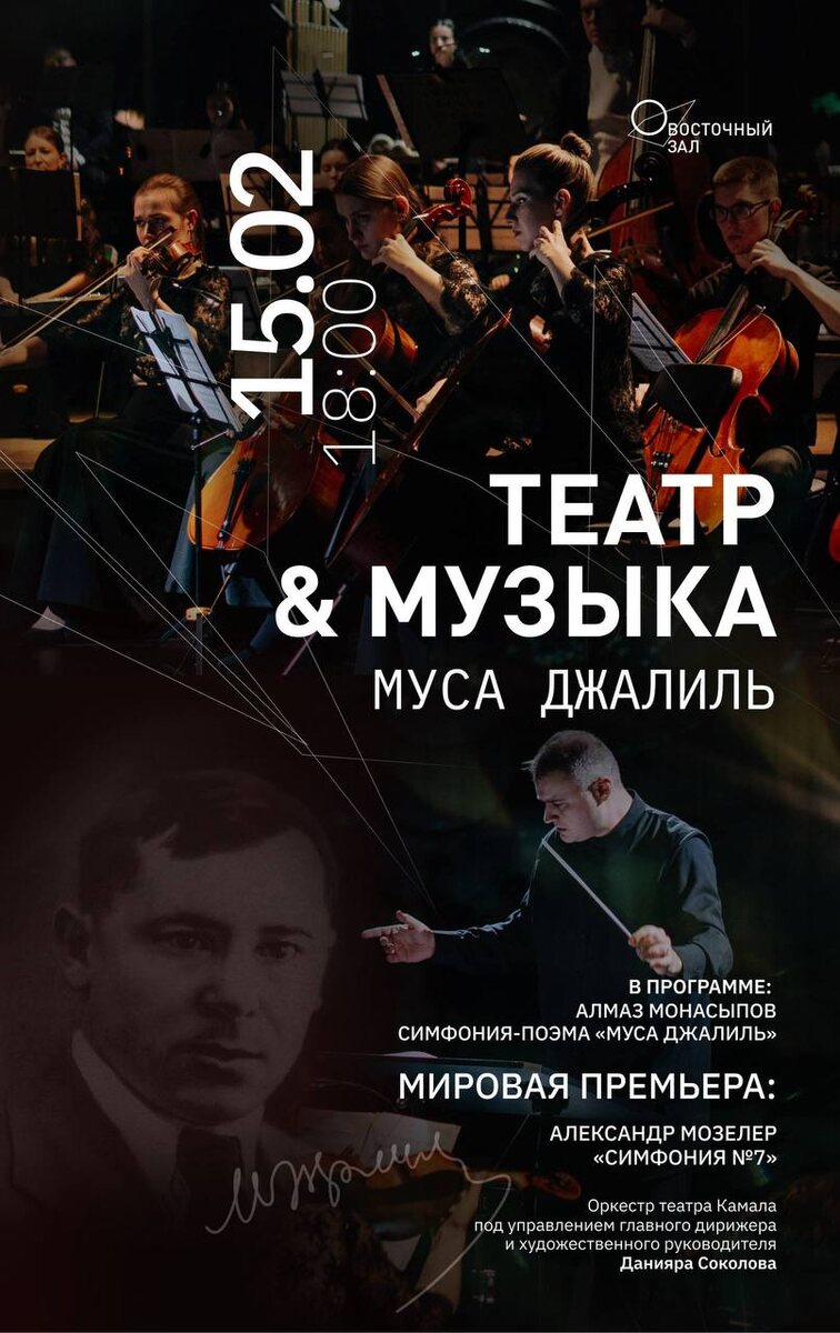 Муса Джалиль Оркестр театра Камала приглашает на вечер, где сплетаются воедино судьба, поэзия и бессмертная музыка. Концерт, посвященный светлой памяти и несгибаемому духу Мусы Джалиля, станет не просто исполнением, а мощным диалогом времен и искусств. В сердце программы — два монументальных сочинения. Алмаз Монасыпов, «Муса Джалиль». Симфония-поэма, где каждая нота — это страница из жизни героя. Музыка, воплощающая его страсть, его борьбу и его бессмертные стихи, ставшие гимном человеческому достоинству. Александр Мозелер - Симфония №7. МИРОВАЯ ПРЕМЬЕРА В КАЗАНИ. Это главное событие вечера — первое исполнение в столице Татарстана масштабной симфонической фрески, целиком посвященной Мусе Джалилю. Пять частей произведения — это пять актов великой трагедии и торжества духа. Вы услышите тревожный покой перед бурей, лицо бесчеловечной идеологии и одиночество тюремной камеры, где рождались бессмертные строки «Моабитской тетради». Музыка проведет вас последним скорбным путем поэта и возне