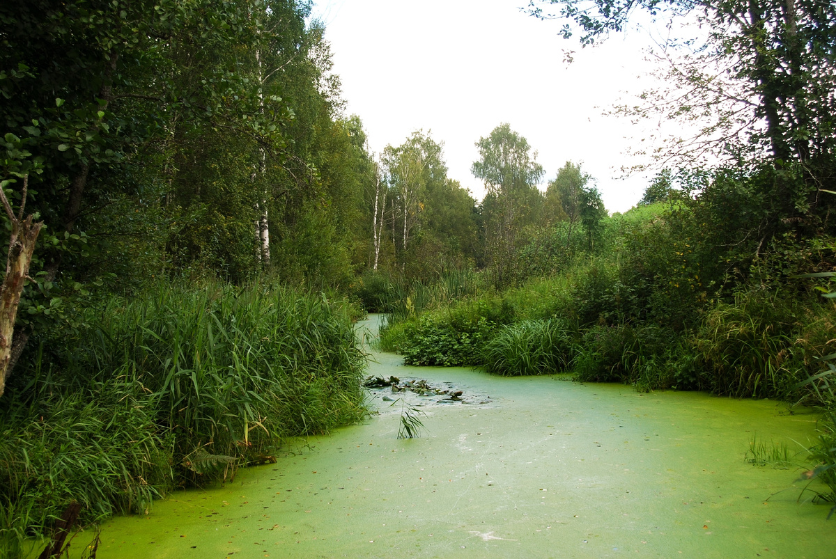 Продолжая путь вглубь леса, я обнаружила ещё участки с водоёмами. Вода в них также была покрыта ряской. Лес вокруг был болотистым, и я заметила множество больших и мелких водоёмов которые не имели названия, а некоторых и вовсе не было даже на картах.