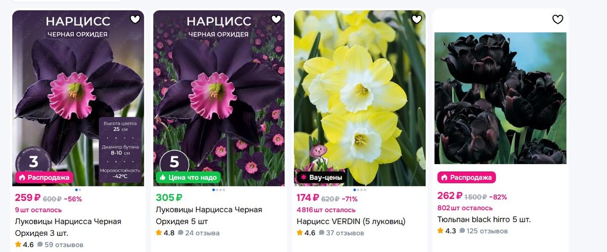 Любой садовод, подбирающий растения для своего участка, мечтает о редком и необычном сорте. Именно этим пользуются мошенники на маркетплейсах, предлагая несбыточное — например, «чёрные нарциссы». Эти экзотические предложения — наглядный пример обмана, построенного на незнании покупателей и возможностях графических редакторов. В статье мы расскажем, почему таких сортов не существует и как не попасться на уловки продавцов. Нарциссы (Narcissus) — род луковичных растений, который включает множество видов и сортов. Но их естественная палитра цвета ограничена законами природы и селекции: Недобросовестные продавцы используют простые, но эффективные приёмы для создания иллюзии существования уникальных растений: Покупая «чёрный нарцисс» или другой несуществующий сорт, вы с высокой вероятностью столкнётесь с одним из следующих исходов: Страдают не только нарциссы. Под раздачу мошенников попадают многие популярные у садоводов растения. Чтобы не потратить деньги, время и нервы, следуйте простым пр