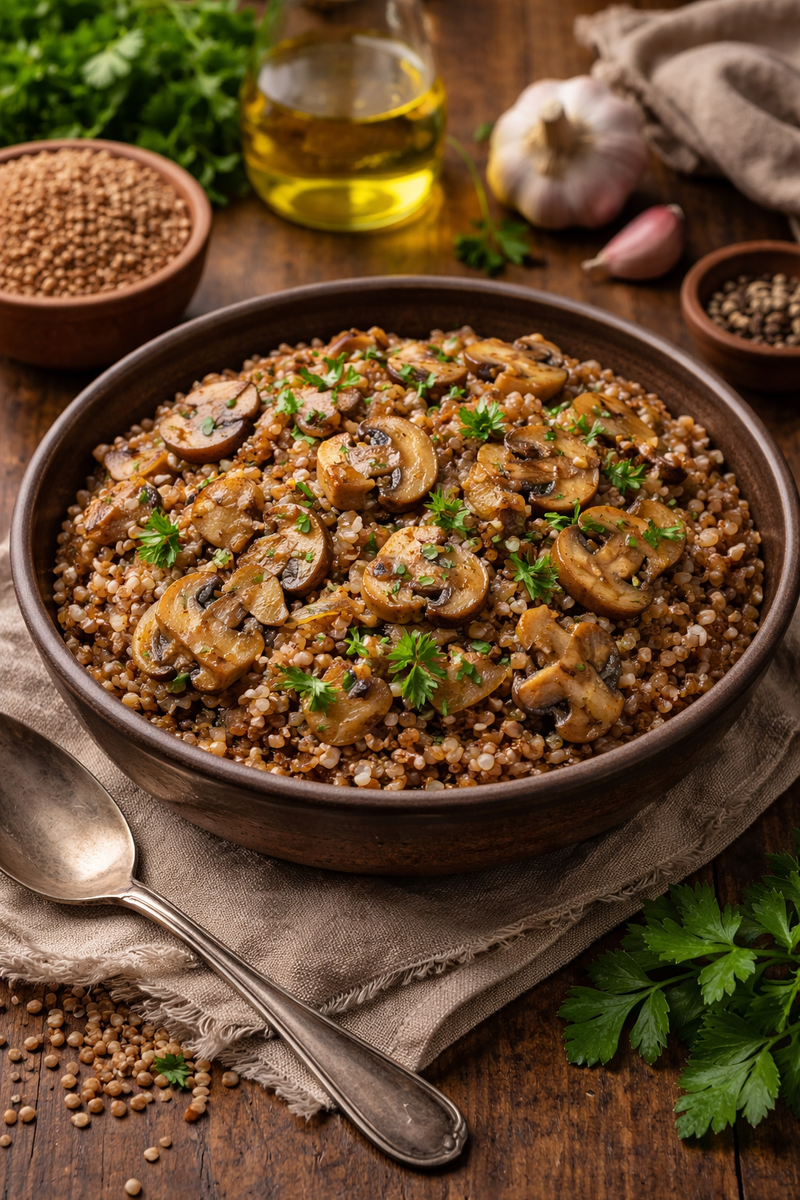 А ведь именно в таких блюдах скрывается вкус который возвращает доверие к кухне. Если вам близка эта мысль, аккуратно напомню в самом начале, что в телеграм канале «Вкус мира» я регулярно делюсь такими находками без шума и пафоса, но с настоящим смыслом. Это блюдо появляется не тогда, когда нет идей или денег. Оно рождается в моменты, когда хочется честной еды. После долгого дня. В холодное утро. В период, когда телу нужна устойчивость, а не фейерверк. Во многих странах подобные сочетания считаются базой высокой кухни. Зерно, гриб, жир и время. Все. Если эти элементы выстроены правильно, блюдо работает на уровне ощущений, а не калорий. Во «Вкус мира» мы всегда говорим одно и то же. Простая еда не равна примитивной. Она просто требует внимания. И да, если такие темы вам близки, подпишитесь на телеграм «Вкус мира». Там эта философия раскрывается без
