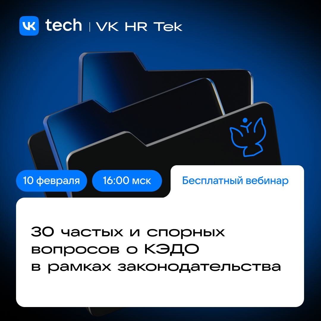 Но даже у опытных HRD, HR-специалистов и работников отдела кадров возникают вопросы о том, как подготовить нормативную базу для перехода или, если переход уже состоялся, как корректно работать с электронными документами. На бесплатном вебинаре 10 февраля в 16:00 (МСК) эксперт VK Tech разберет спорные ситуации и даст практические советы на основе реальных кейсов. 🔹 Зарегистрироваться. В программе: 🔵Какие согласия нужно получить от работника для перехода на КЭДО 🔵Как оформить согласие работника на обработку персональных данных 🔵Как правильно заключить соглашение о применении УНЭП 🔵Что должно быть в регламенте о введении электронного кадрового документооборота 🔵Как оформлять в КЭДО авансовые отчеты и справки 2-НДФЛ Вебинар будет интересен HRD, HR-специалистам и работникам отдела кадров Для участия нужно зарегистрироваться.