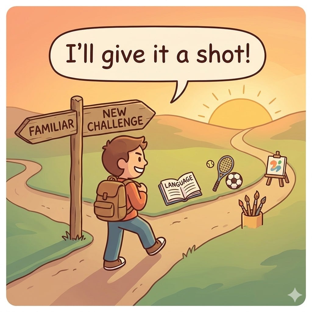 📌 СЛОВО: TO GIVE IT A SHOT Произношение: [ɡɪv ɪt ə ʃɒt] Значение: попробовать, сделать попытку (дословно: «дать этому выстрел») Примеры: ✅ I've never tried yoga, but I'll give it a shot. (Я никогда не пробовал йогу, но попробую.) ✅ You should give it a shot — you might like it! (Тебе стоит попробовать — может, понравится!) ⚡️ #SpeakingChallenge: ВАША ОЧЕРЕДЬ! Ваше задание: Ответьте на вопрос: "What's something new you'd like to GIVE A SHOT this month?" (Чему новому вы хотели бы ПОПРОБОВАТЬ в этом месяце?) 🎯 СТРУКТУРА ДЛЯ ОТВЕТА: This month I want to give... a shot. Because... (причина) I think it will be... (ожидания) 💡 ИДЕИ ДЛЯ ВДОХНОВЕНИЯ: Образование: 📚 ...a new English learning app 🎧 ...listening to podcasts in English 📝 ...writing a diary in English Хобби: 🎨 ...painting or drawing 🍳 ...cooking a new cuisine 🧘 ...meditation Профессия: 💼 ...a new software at work 📊 ...a different project management method 🎮 ФОРМАТЫ УЧАСТИЯ: Выберите удобный: ✍️ Текст — 3 предл