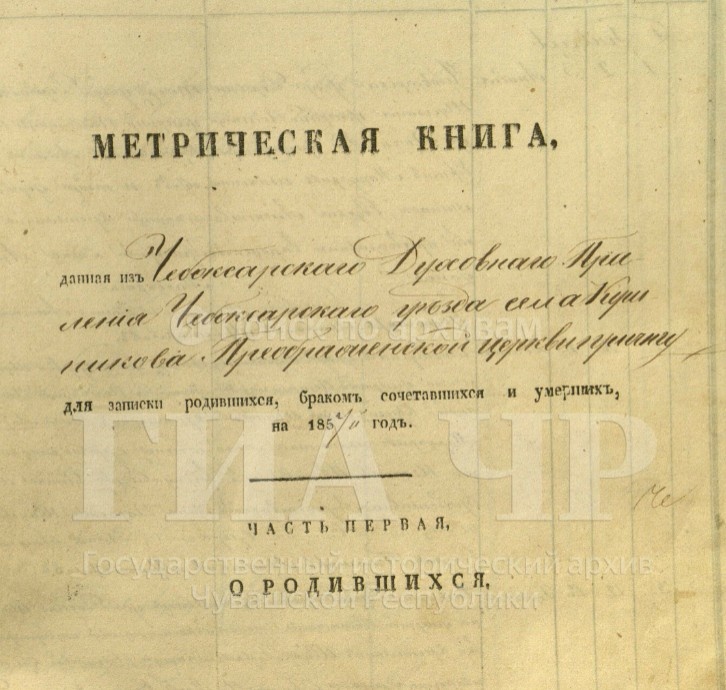 Метрические книги о рождении, браке и смерти за 1857 г. 1 января 1857 — 31 декабря 1857 ГИА Чувашской Республики (ГИА ЧР), фонд № 225, опись № 3, дело № 126, стр. 1448 скан. Метрическая книга, данная из Чебоксарского духовного правления Чебоксарского уезда села Кушникова Преображенской церкви причту для записки родившихся, браком сочетавшихся и умерших на 1857 год. Часть первая. О родившихся. Стр. 1485 скан. Декабрь. № 45. 25 числа родился. 26 числа крещен. Василий. Родители: Чебоксарского уезда деревни Шульгина вольноотпущенный от умершей помещицы Птенцовой крестьянин Трофим Несторов и законная жена его Матрена Васильева, оба православного вероисповедания. Восприемники: того ж уезда деревни Шульгина умершей помещицы Птенцовой крестьянин Нестор Никифоров и Казанского мещанина Василия Тимофеева дочь девица Офимья. Таинство крещения совершил священник Стефан Фортунатов. Дьячек Александр Смирнов. Пономарь Михаил Аристархов. https://yandex.ru/archive/catalog/aa3f6ea2-fec0-4ec6-b080-34d725