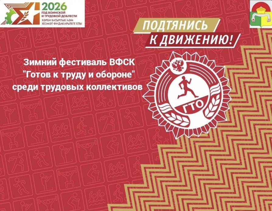 ! ❄️🏆 С 9 по 20 февраля 2026 года на базе спортзала «Алтын» пройдёт зимний фестиваль ГТО среди трудовых коллективов нашего района! Он посвящён Году воинской и трудовой доблести в Татарстане. Приглашаем команды от предприятий и организаций! Соберите коллег и покажите, на что способен ваш дружный коллектив. Условия участия: ✅ Команда — 8 человек. ✅ Возраст участников — от 25 до 64 лет. ✅ Соревнования пройдут по ступеням ГТО, соответствующим возрасту. Ждём вас: 📍 Старт — 9 февраля в универсальном спортивном зале «Алтын». 📍 А 14 февраля присоединяемся к республиканской «Лыжне Татарстана — 2026» на лыжной базе села Старое Дрожжаное, где будут приняты нормативы по лыжным гонкам. Побеждает команда, набравшая наибольшую сумму очков. Это отличный шанс проверить себя, поддержать коллег и зарядиться духом зимнего спорта! #ГТО #ГТОТатарстан #СпортРоссии #ЛыжняТатарстана2026 #ЗимнийФестиваль #ТрудовойКоллектив #СпортДляВсех