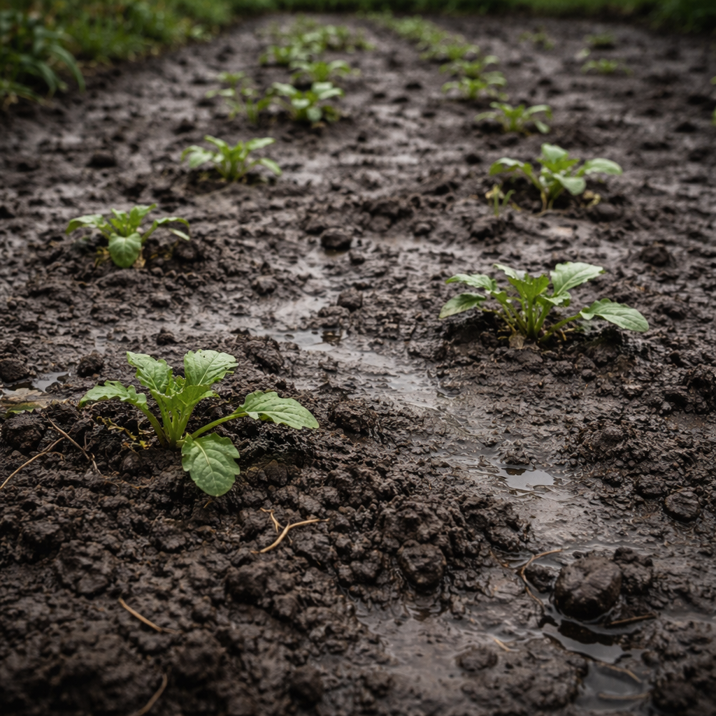 Корни оказываются в среде, где кислорода почти нет. В таких условиях они замедляют рост, а иногда частично отмирают — не сразу заметно, но постепенно. Даже если в почве есть элементы питания, без воздуха они хуже усваиваются.