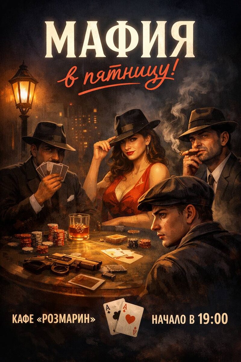 🙌🏻 Совсем скоро пройдёт новая игра в «Мафию»! #идёмплатно 6 февраля в 19:00 в кафе «Розмарин» по адресу: ул. Николая Островского, 19В ➡️ Уточнить все детали и забронировать место можно у @mister_ZoRRoo ✍️ Если вы хотите: — отлично провести вечер, — поиграть, посмеяться и покорить всех своей актерской игрой, — познакомиться с классными людьми, — и просто отлично провести воскресенье — то вам точно стоит посетить это мероприятие! 💬 «Будет смех, подозрения, громкие «Я точно мирный!» и финалы, после которых хочется аплодировать», — отметили организаторы. Не забудьте подписаться на наш канал ❤️