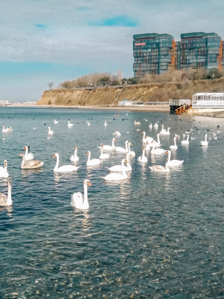 Обстановка по лебедям на море в Анапе 5 февраля - район Малой Бухты🦢