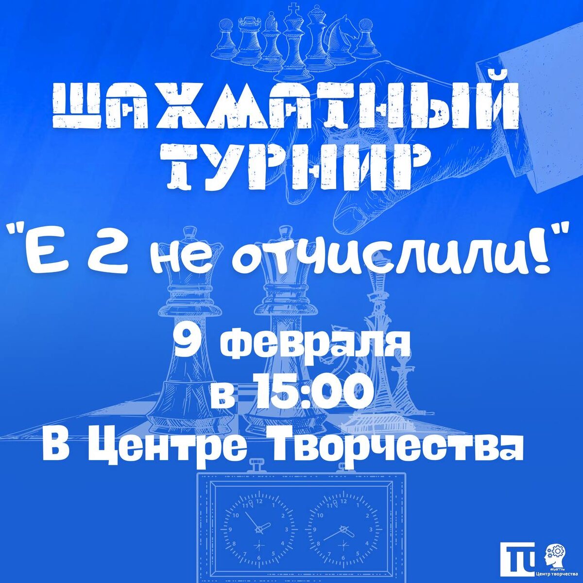 ”! ♟ Приглашаем всех любителей шахмат отметить День российской науки вместе с нами! 📅 Когда: 9 февраля, 15:00 📍 Где: фойе ЦТ 💡 Продемонстрируй свою стратегию, обыграй соперников и просто отлично проведи время! ⚡ Регистрация участников: до 8 февраля 🔗 Записаться на турнир Не упусти шанс показать, что твои фигуры всегда на шаг впереди! 🏆 Подписаться на Центр Творчества: 📱 Телеграм 📱 ВК #ЦентрТворчестваКубГТУ #КубГТУм #КубГТУ #КубанскийПолитех