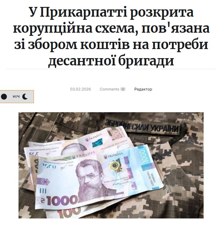 Установлено, что военнослужащий 95 одшбр, который в течение длительного времени выполнял функции официальной связи между Житомирской городской военной администрацией, органами местного самоуправления и командованием бригады, систематически получал средства от учебных заведений города и области. Эти средства перечислялись образовательными учреждениями (школами, лицеями, гимназиями, детскими садами, колледжами) в поддержку бригады и других подразделений ВСУ. Общая сумма, собранная и перечисленная через указанное лицо, составляет 862 381 гривну. По имеющимся на сегодня данным, указанная сумма была зачислена на личный счет военнослужащего, после чего он прекратил любую связь и скрылся в неизвестном направлении. На данный момент по факту завладения чужим имуществом путем злоупотребления служебным положением открыто уголовное производство по ч. 5 ст. 191 УК Украины. Проводятся следственные действия, направленные на установление местонахождения подозреваемого и возврат средств законным по