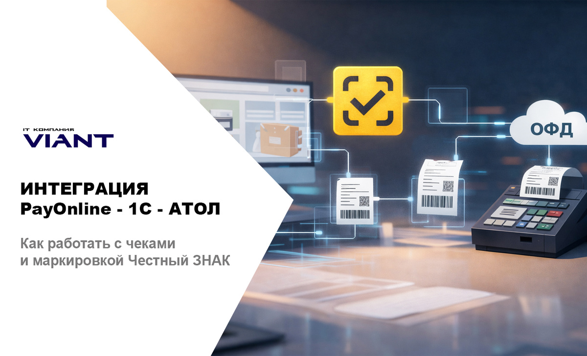 К нам обратился клиент с интернет‑магазином косметики. Продажи шли онлайн: покупатель оформлял заказ на сайте, платил через PayOnline, а дальше цепочка была привычной и удобной — платежные данные уходили в АТОЛ и затем в ОФД. Клиент получал от PayOnline информацию об оплатах и на её основе формировал в 1С реализации: процесс стабильный, отлаженный, без ручной рутины. Ситуация изменилась, когда продукция попала под обязательную маркировку Честный ЗНАК. Теперь при продаже нужно корректно списывать коды маркировки (передавать их в чек). Выяснилось, что текущая система PayOnline не умеет передавать марки в кассовый контур. Дальше начались «советы с разных сторон»: PayOnline предложил передавать марки напрямую в АТОЛ, а АТОЛ— подключить онлайн‑кассу напрямую к 1С и пробивать «второй чек» по каждой реализации. Для клиента это означало усложнение процесса и риски: как сопоставлять чеки предоплаты с чеками полного расчёта, как избежать ошибок оператора, двойного списания маркировки и путаницы