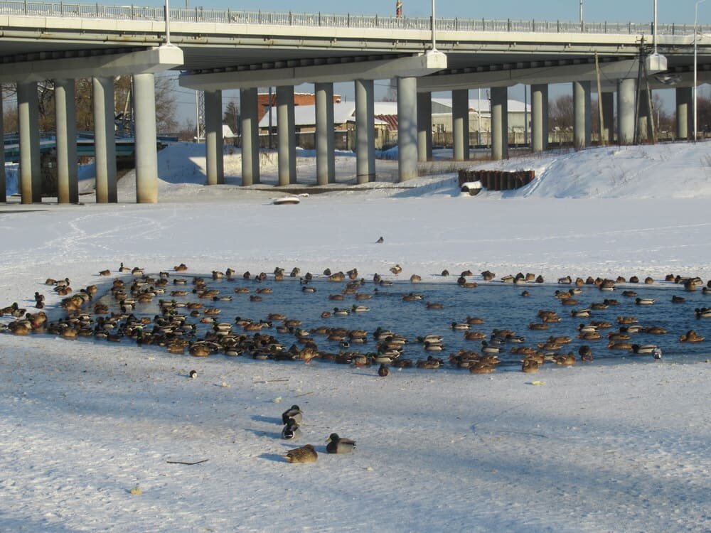 На набережной Брянска стали насмерть замерзать слабеющие на лютом холоде утки