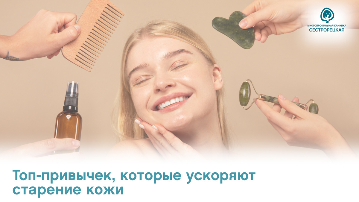 В статье рассказываем о том, какие привычки ускоряют старение кожи и как их избежать, чтобы сохранить молодость. Состояние кожи — один из самых ярких маркеров здоровья и образа жизни. Но даже если вы тщательно ухаживаете за собой, некоторые повседневные привычки могут незаметно ускорять процессы старения. Сегодня обсудим, что приводит к старению кожи и что поможет сохранить ее молодость. Ультрафиолет – один из главных факторов преждевременного старения кожи и появления пигментации. Поэтому SPF – это не только про лето и пляж. Даже если кажется, что солнца “почти нет”, кожа все равно получает свою дозу УФ-лучей. Что делать: отслеживайте УФ-индекс, используйте крем с SPF круглогодично, как в солнечную, так и в пасмурную погоду (подобрать подходящее средство поможет врач-косметолог). Если использование солнцезащитного крема по каким-то причинам вам не подходит, защитить кожу помогут одежда и аксессуары – например, головные уборы с широкими полями. Курение снижает приток кислорода к коже,
