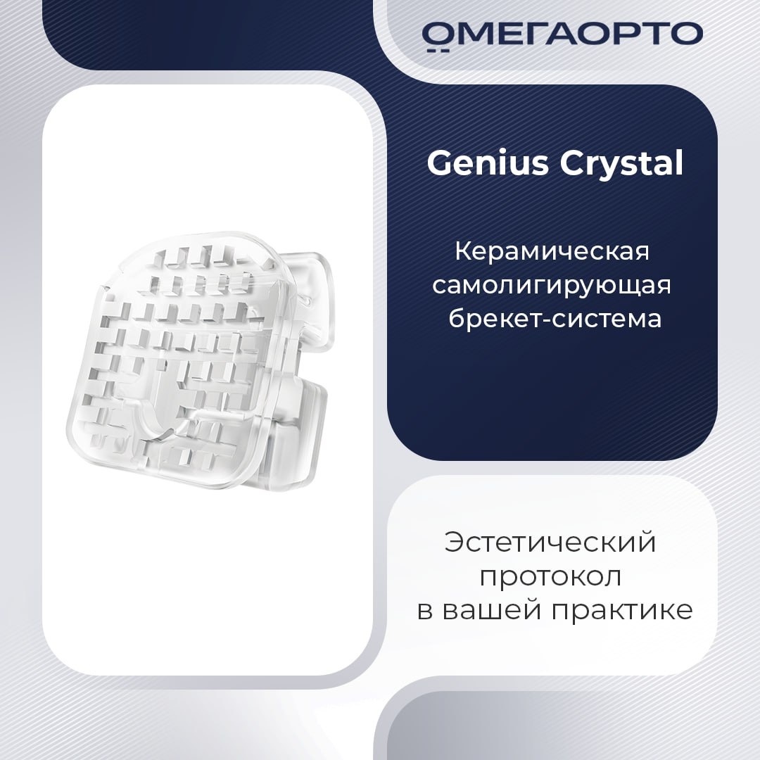В ортодонтии часто приходится выбирать между «красиво» и «функционально». Пассивная самолигирующая система Genius Crystal (MEM Dental) закрывает оба вопроса. Это высокотехнологичный оксид алюминия, который мимикрирует под естественный оттенок эмали. Почему ортодонты выбирают Genius Crystal? — Чистая эстетика: Конструкция CIM без металлического паза. Брекет остается практически незаметным на протяжении всего лечения. — Предсказуемая фиксация: 80-ячейковое основание гарантирует адгезию, которой можно доверять. — Удобство в деталях: Характерный щелчок при закрытии крышки дает визуальный и тактильный контроль. — Забота о пациенте: Закругленные грани и окклюзионное открытие (защита десны) сводят период адаптации к минимуму. Легкий дебондинг в конце лечения станет приятным бонусом как для вас, так и для пациента. Рекомендованный протокол смены дуг: .014 & .018 Ni-Ti (универсальные): Нивелирование, 8-16 недель. .014 x .025 Ni-Ti: Основной этап, 10-15 недель. .018 x .025 Ni-Ti: Контроль качест