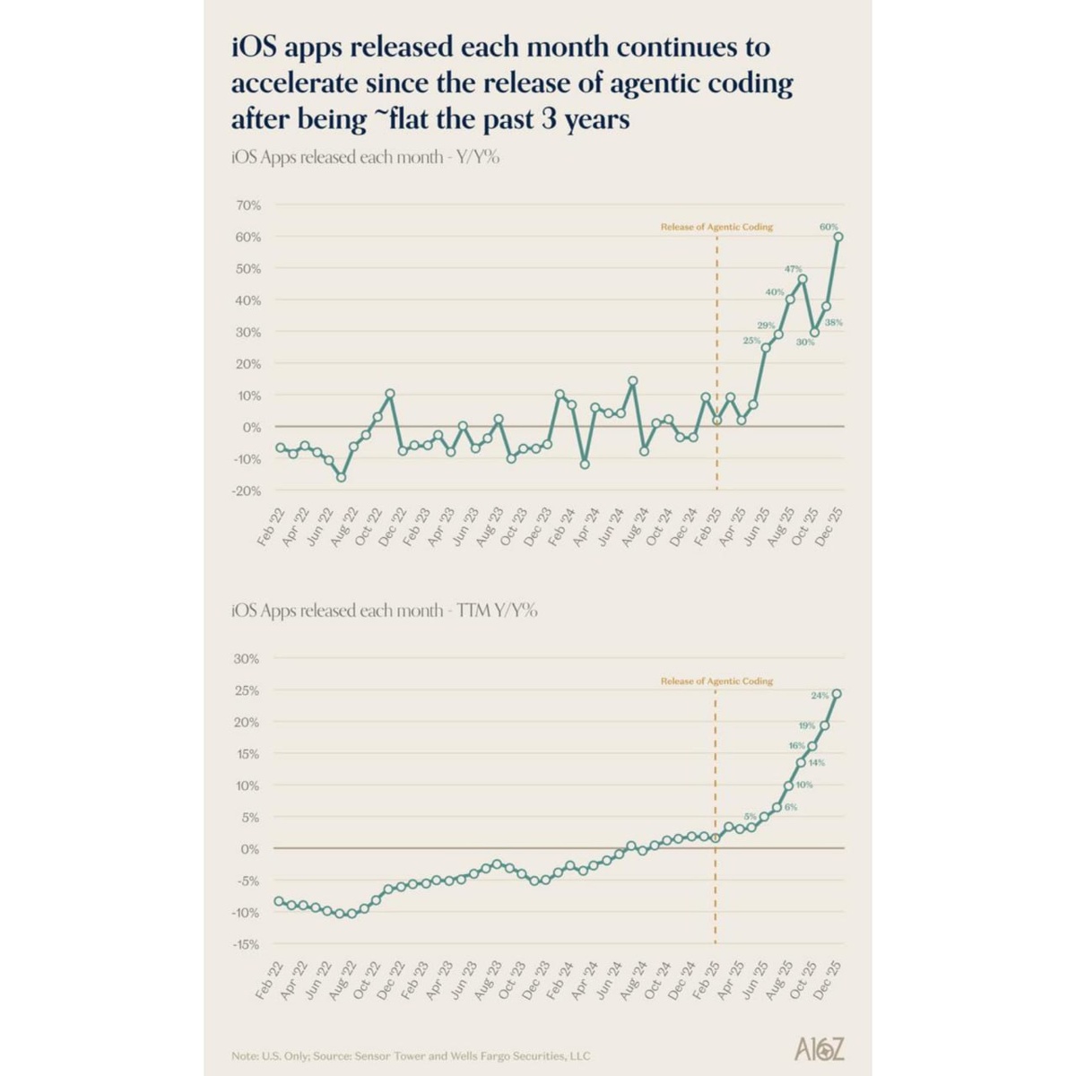 скачка новых приложений в App Store :) Причина? Вайб-кодинг. Это когда на пальцах объясняете ИИ свои влажные фантазии о кнопках и интерфейсах, а она, не задавая лишних вопросов о смысле жизни, выплевывает готовый код.... Зачастую бесполезный. Вон на картинке рост неведомого говна в сторах :) Русский ИТ бизнес