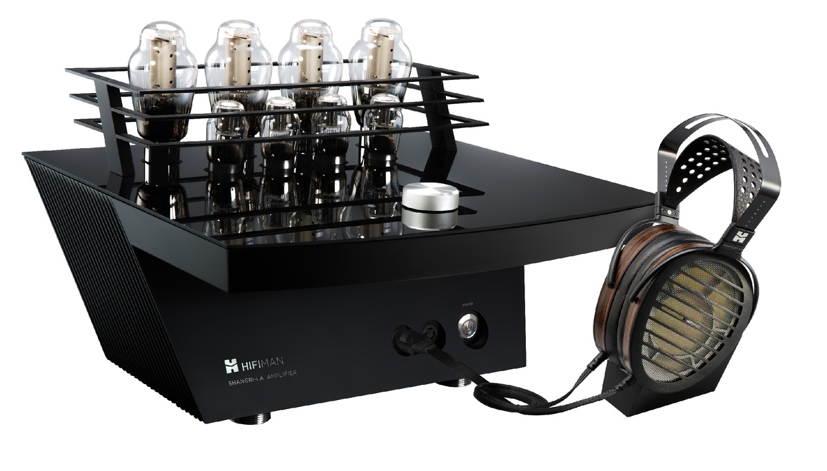 Дополнением к электростатическим наушникам Shangri-La является соответствующий специально разработанный электростатический усилитель, основанный на квартете ламп 6SN7, которые управляют набором из четырех специально разработанных и изготовленных на заказ выходных ламп 300B.