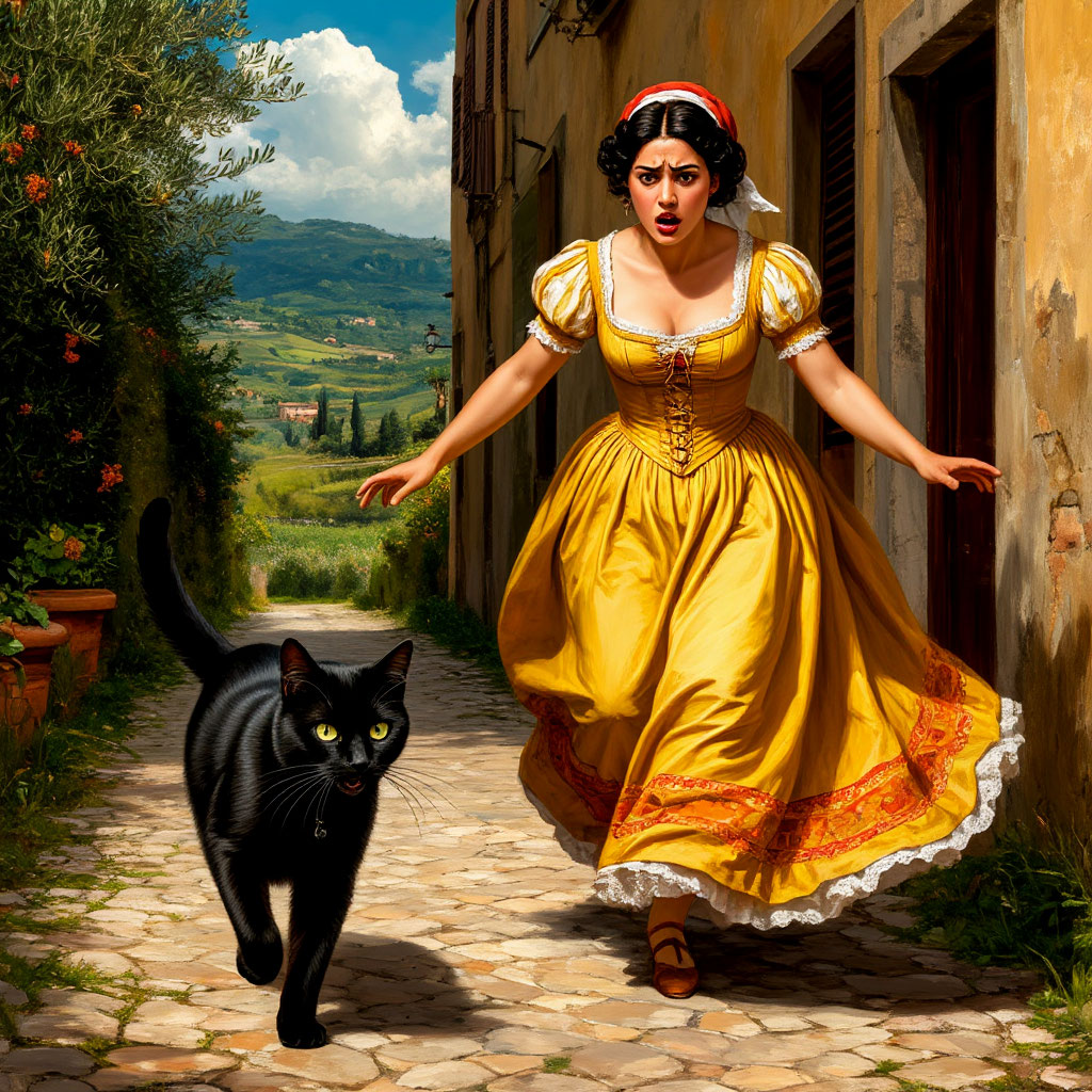Вдруг из-за угла выходит чёрная кошка. Роскошная синьора начинает креститься, мужчина тоже побледнел. А всё потому, что чёрная кошка в Италии тоже дурной знак (правда, только в одном случае, про который расскажу позже).