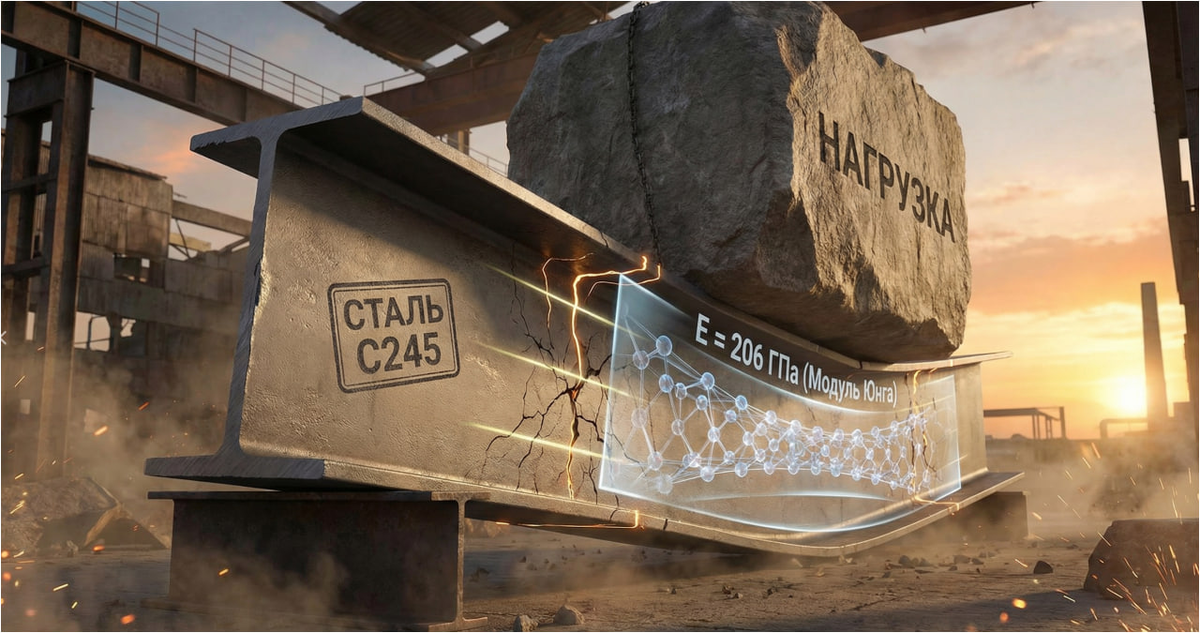 Многие думают: возьму С345 или С390 вместо С245 — конструкция станет надёжнее. На практике это часто бессмысленная переплата. Разбираемся почему. 📐 Главный секрет: модуль упругости одинаков! ⚠️Модуль Юнга E ≈ 2,06...2.1×10⁵ МПа для ВСЕХ строительных сталей — от С235 до С440. Это означает: 🔸Прогибы одинаковы при равных сечениях 🔸Жёсткость конструкции не меняется ⚖️ Два предельных состояния 1️⃣ Первое — прочность и устойчивость 2️⃣ Второе — прогибы и деформации 📎Большинство типовых конструкций (балки перекрытий, прогоны, связи) проектируется именно по второму состоянию или по устойчивости, потому что по первому с самой "слабой" сталью все по расчету нормально. А по второму марка стали роли не играет! 🙃Как сказали на вебинаре Северстали: «Если конструкции подбираем по прогибам, то про сталь мы в принципе не говорим, и это никому не интересно». 🚩Примечание: кстати, продолжается набор со скидкой на 1й поток обучения по направлению "Сопротивление материалов" (осталось 3 денька всего ск