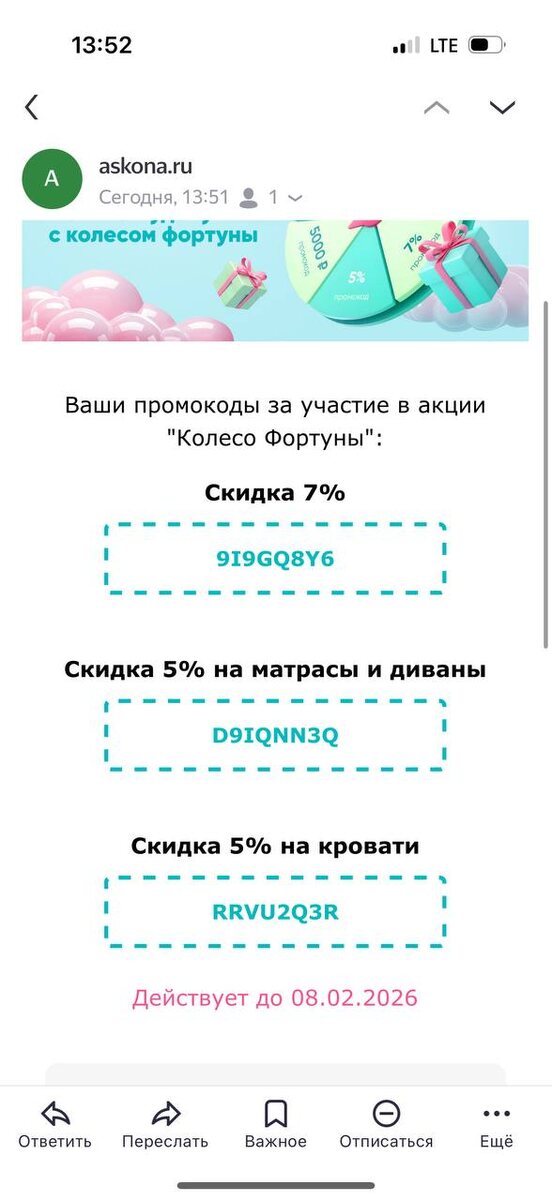На сайте Аскона сейчас можно покрутить колесо и выиграть всякие ништяки. Я вот что навыигрывала, отдаю, может надо кому.