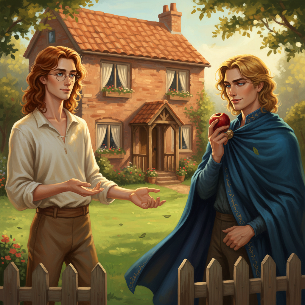 — Чудесное утро, — услышал он голос и повернул голову. С противоположной стороны низенького заборчика, во дворе Батильды, стоял стройный юноша с нахальной улыбкой забияки. Он был пониже Альбуса, но не коротышка (по правде, многие были ниже его и брата), золотистые волосы завитками спадали до плеч, а глаза лукаво (как у Батильды) поглядывали на соседа. Подбросив красное яблоко, он надкусил его. — Так значит, вы из наших? Тётушка сказала, что соседи тоже чародеи.