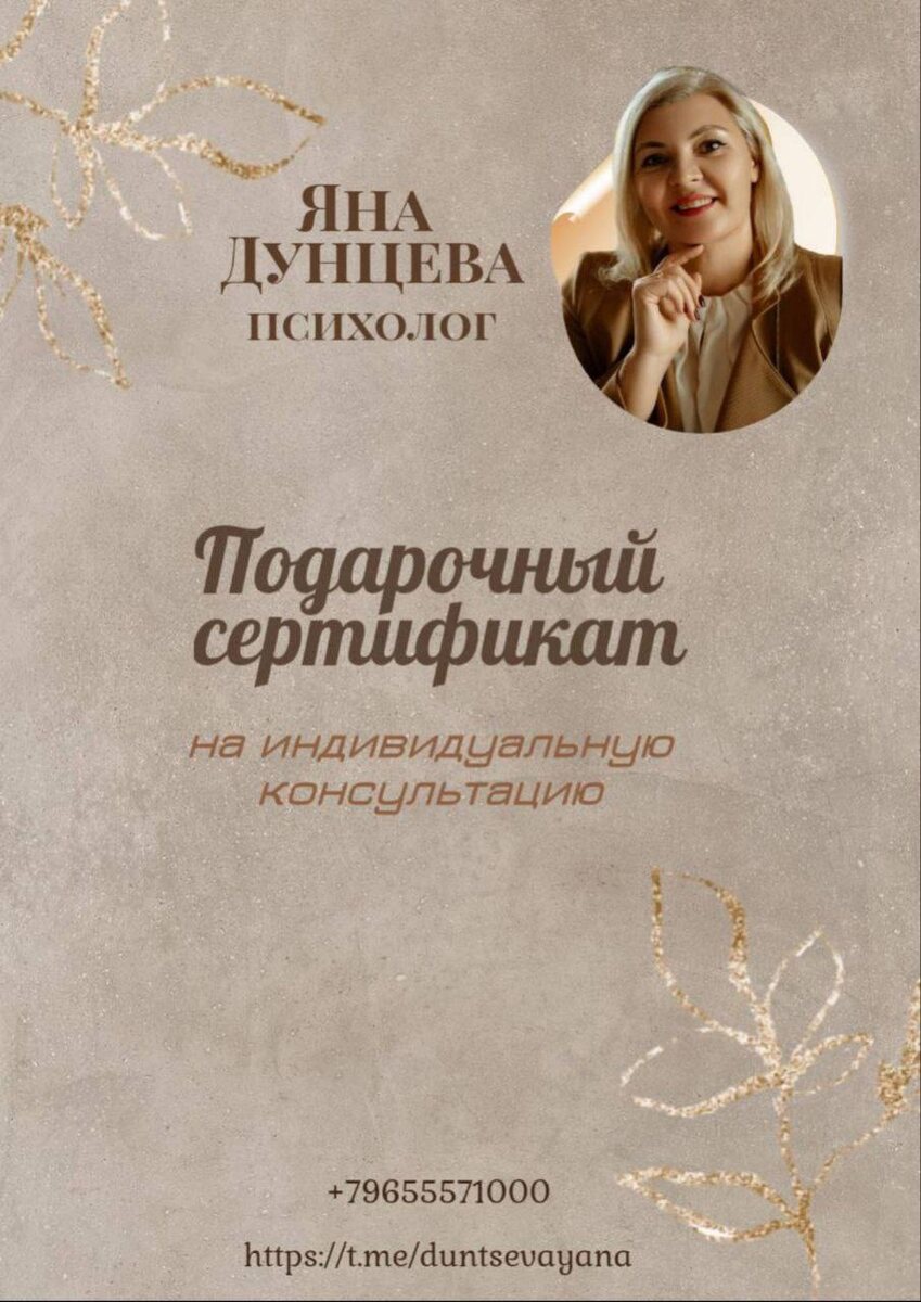 ? Друзья, как психолог я не советую дарить сертификат на консультацию, если человек сам этого не просит. Потому что терапия работает только тогда, когда человек сам готов меняться. Иначе это превращается в давление: «Вот, иди, тебе это нужно». Но есть ситуации, когда сертификат - это реально работающий вариант ⬇️ Вариант1️⃣: Подарок себе Вы давно хотите что-то изменить, но откладываете. Денег «как бы нет». А тут праздник на носу - День Святого Валентина, 8 марта, день рождения. И вас спрашивают: «Что тебе подарить?» Это ваш шанс. Попросите сертификат на консультацию. Или подарите себе сами - это акт заботы о себе, а не эгоизм. Когда это уместно: 🟠Хочу избавиться от тревоги, но всё откладываю 🟠Хочу новую работу, но не могу начать действовать 🟠Ору на детей, романтика с мужем исчезла 🟠Плохие отношения с родителями, вся в обидах 🟠Хочу проявляться, заниматься собой, но что-то блокирует Почему это работает: Когда вам кто-то дарит сертификат (или вы сами себе) - это не просто деньг