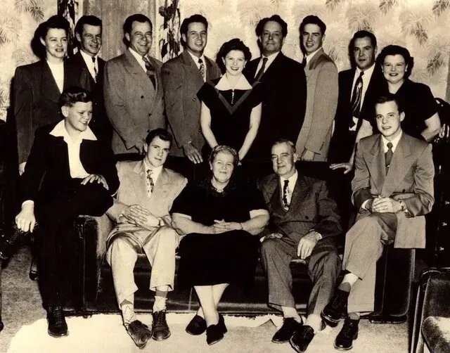 «Мои прабабушка и прадедушка, бабушка и её дети на День благодарения, 1959 год. У моей бабушки впоследствии родилось 17 детей».