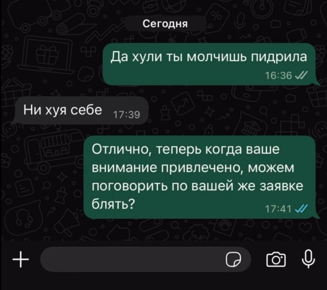 * Это не моя переписка 😁 Но я знаю тех, кто так делает (применяет жёсткие методы) и знаете что - работает! ⚠️ Ну алё! Я не призываю хамить и переходить все границы разумного (хотя иногда это нужно и полезно). Смотрите в корень! В этом примере речь не о скриптах, а о концепции выхода за рамки обычного поведения - из слепой зоны. При условии, что ваша услуга или продукт РЕАЛЬНО нужен и полезен клиенту, то выдернуть его из серых будней и продать (т.е сделать его жизнь лучше) - нужно 100%. Особенно, если прочие более вежливые попытки потерпели фиаско... Этот прием (при условии наличия пользы) применяют: - Полиция своими спец сигналами - Скорая помощь своим ревом на всю улицу - Пожарная или воздушная тревога и т.п. Все эти странные и громкие звуки преследуют одну цель - обратить внимание на ситуацию или на себя. А это и есть продажа, это и есть маркетинг... Маркетинг - это способы привлечь и удержать клиента. Про удержание у меня целый курс, книга и масса лекций