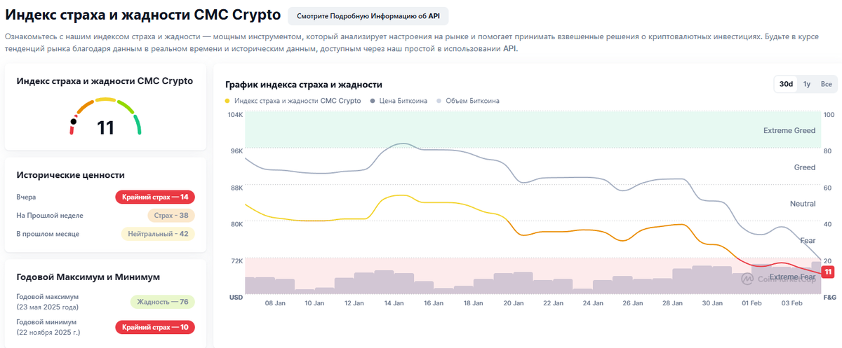 Индекс страха и жадности CMC упал до 11: сигнал к панике или шанс для покупки?