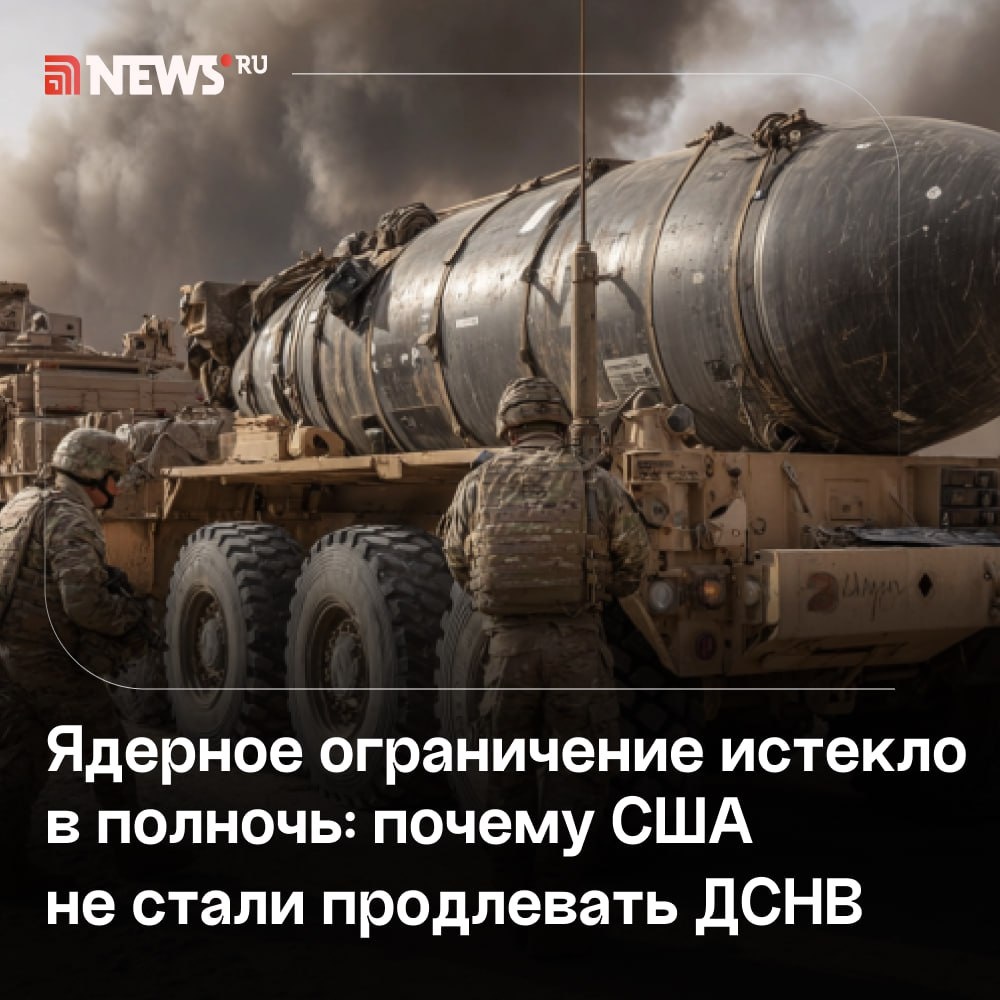 «Испытания ядерного оружия на равных условиях»: что будет с глобальной безопасностью после истечения срока действия ДСНВ. Договор по сокращению стратегических наступательных вооружений истек сегодня. Россия предложила США сохранить его основные принципы еще на год — если Вашингтон отменит односторонние ограничения. Но Штаты так и не отреагировали на российскую инициативу. Как РФ теперь будет вести диалог с Западом по ядерному оружию — рассказал в колонке NEWS.ru политический аналитик Александр Чаусов. ⭕️ Подписаться | Мы в MAX | Буст
