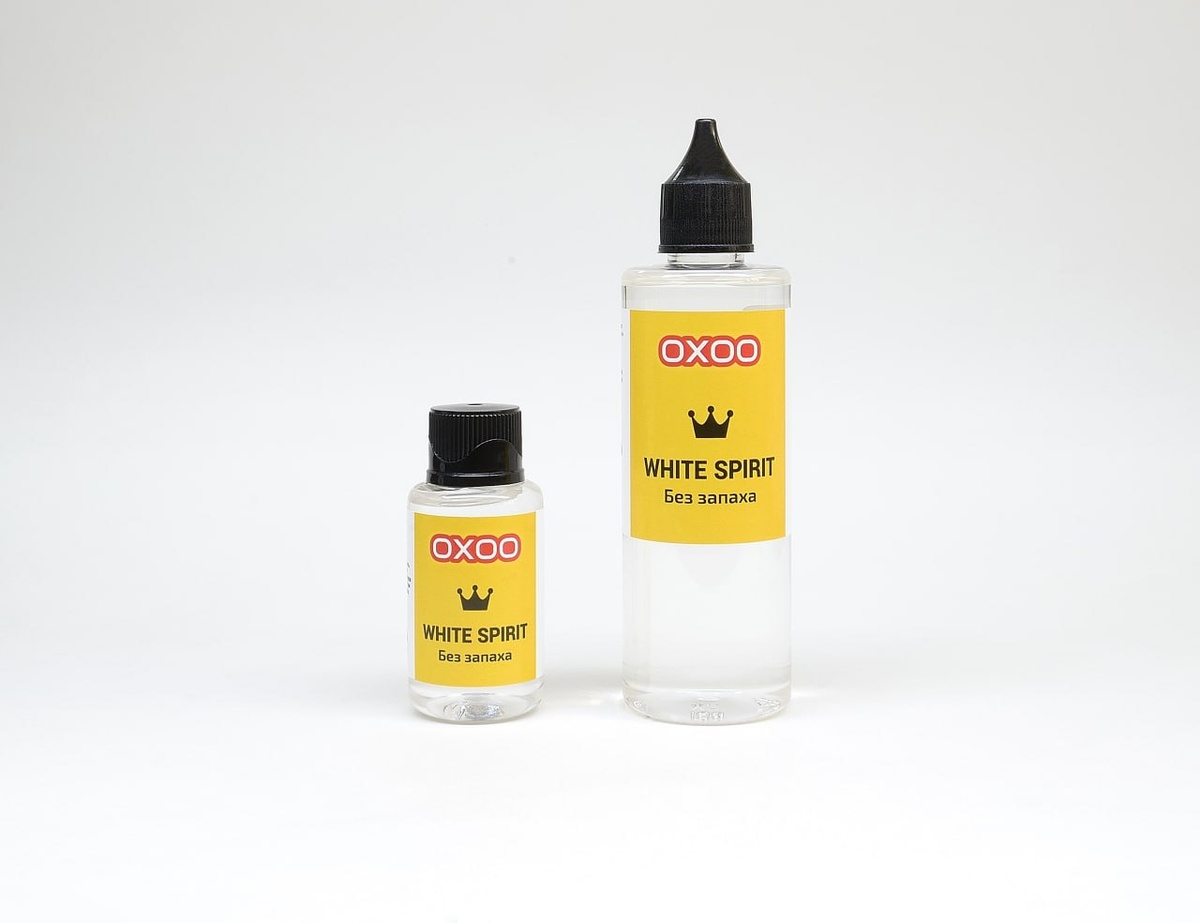 OXOO выпустили высокоочищенный Уайт-спирит без запаха в новой удобной упаковке 100 мл с носиком дозатором.