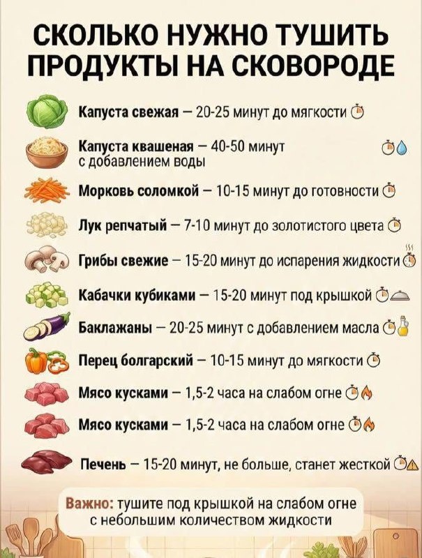 Сколько нужно тушить продукты на сковороде