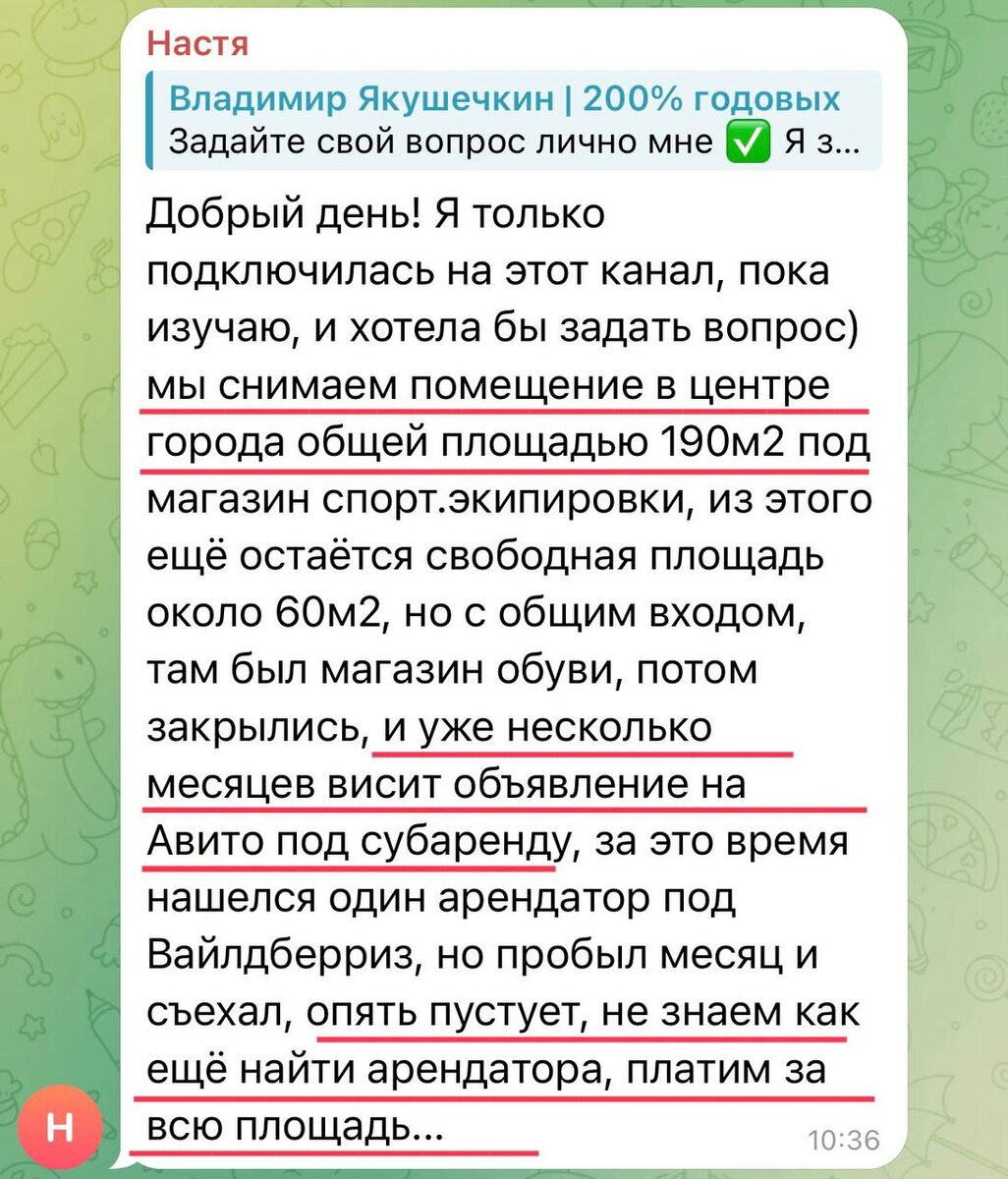 ? Невозможно делать 200% годовых на недвижимости. Узнаем всю правду сегодня в 15:00 мск. 1️⃣ На эфире будет подписчица канала, которая уже несколько месяцев не может заселить объект (скрин выше). 2️⃣ А также резидент сообщества Ирина Мисливец, которая заселила свой первый объект на 90% за 3 недели. Обсудим, в чем разница между их стратегиями, и какой из них придерживаться вам, чтобы быстро заселять свои объекты. Ссылку на подключение отправлю за 10 минут до старта.