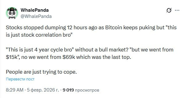 Акции перестали падать 12 часов назад, а биткоин продолжает блевать, но «это просто корреляция с фондой, бро
