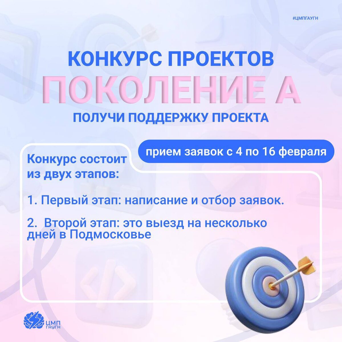 ! «Поколение А» — это ежегодный конкурс студенческих проектов в ГАУГН, который проходит с 2021 года⏩ Это возможность для студентов предложить идею, получить поддержку и реализовать её в стенах университета! Этапы проекта: 1️⃣ Школа «Поколение А» Несколько недель полезных лекций, воркшопов и консультаций, где вы получите все необходимые знания и навыки для разработки сильного проекта. 2️⃣ Очный выезд в Подмосковье Погружение в проектную работу: мастер-классы, менторство, командные обсуждения и финальная защита перед экспертами. 🩰 Помните ли вы Бал ГАУГН? Или вы ходили в походы от Турклуба ГАУГН? Это проекты, которые были созданы в рамках конкурса проекта «Поколение А». Что получают победители?🏆 — Поддержку от Центра молодёжной политики ГАУГН — Консультационное сопровождение на всех этапах реализации 🔗 Регистрация открыта до 16 февраля включительно! Успей подать заявку по ссылке! Неважно, есть ли у вас готовая идея или только желание меняться к лучшему — «Поколение А» даёт шанс