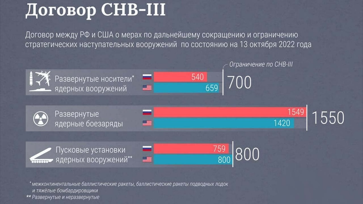 Срок действия ограничений по Договору о сокращении стратегических наступательных вооружений (ДСНВ) завершился, при этом США отказались от его продления, что фактически означает прекращение взаимных обязательств сторон. В МИД России сообщили, что Москва не получила официального ответа Вашингтона на предложение соблюдать установленные договором лимиты и расценивает это как преднамеренный и ошибочный шаг. В этих условиях Россия исходит из того, что рамки соглашения более не действуют, и стороны свободны в выборе дальнейших действий. При этом российская сторона заявила о готовности к решительным военно-техническим мерам для нейтрализации возможных угроз, подчеркнув намерение действовать ответственно и взвешенно. Москва также сохраняет открытость к политико-дипломатическим путям стабилизации стратегической обстановки и будет формировать политику в сфере стратегических наступательных вооружений с учётом действий США и общей ситуации. В МИД отметили, что публичные заявления Вашингтона не сви