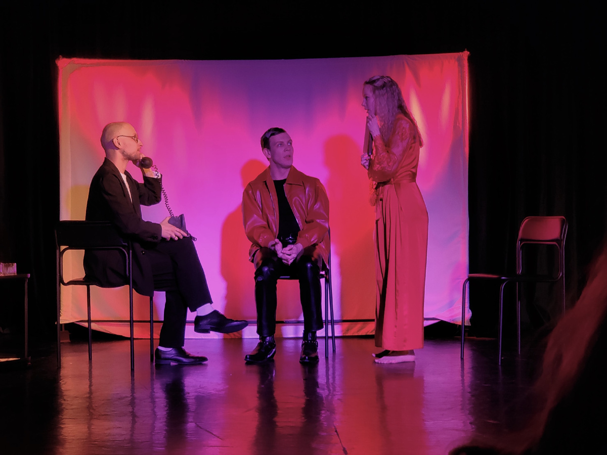 Спектакль по роману Набокова «Камера обскура». Для меня неожиданностью было, что «Смех в темноте» - это собственный перевод Набокова на английский язык. И тогда же он поменял имена главных персонажей. Так вот спектакль театра Циники - это и не спектакль совсем. Фактически это «фильма» черно-белая и немая. Вернее, черно-красно-белая, где цветами выражаются разные эмоции. Цвет и свет в спектакле - однозначно одно из главных действующих лиц. Сюда же можно отнести и фонарики, которыми высвечивают лица героев в главные моменты. Конечно, спектакль не немой, но слова, на мой взгляд, менее важны, чем эмоции, выражаемые актерами. И тут главное: актеров всего трое, и каждый из них – это находка. Великолепен Константин Мерзликин (Альберт Альбинус или Бруно Кречмар – так мне привычнее). Превратиться в одно мгновение из уверенного в себе человека в совершенно потерянного, уничтоженного, сломленного - это класс. Дарья Юдичева (Марго или Магда) - особенно потрясающа в сценах с ослепшим уже Альбертом