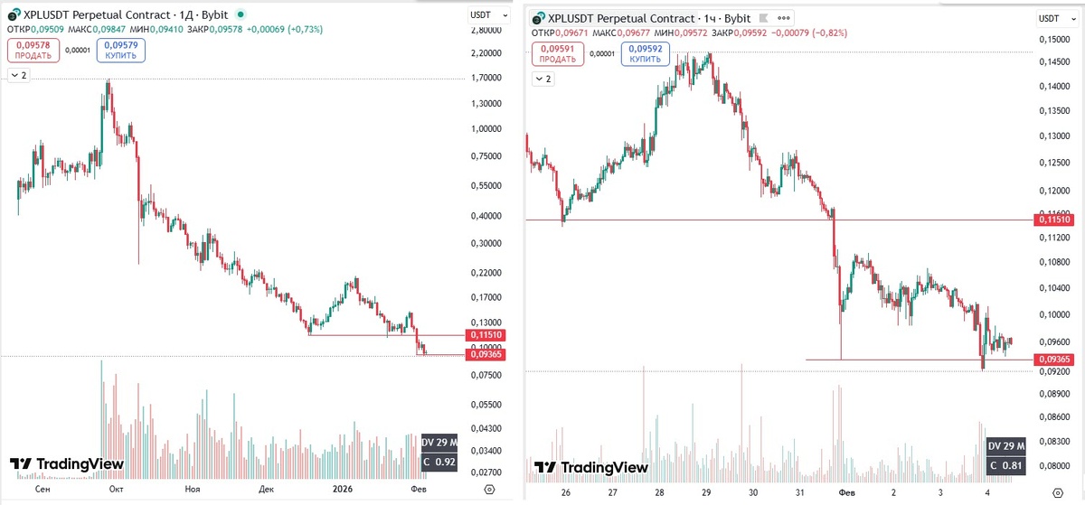 Вчера была еще сделка в шорт по рекомендации, по монете XPL. Предпосылки: Решил в этот раз зайти не на активности по уровню, а с верхней границы локального диапазона, что бы поставить более маленький стоп. Потом увидел, что активность в стакане упала и выскочил по рынку, решив «перезайти». Но, свои скальперские +1,47% взял и на этом)) Перезашел через 10 минут уже на локальном пин-баре. И решил подольше «постоять в сделке» и посмотреть, что будет. Как обычно, стоп перенес в «безубыток», сразу после обновления лоя, чтобы не рисковать. Через четыре часа увидел, что цена «запилила» и всё-таки закрыл половину позы. Выключил компьютер. Оставил сделку жить своей жизнью – с одной стороны безубыток, с другой – свободная зона цены! Включил комп утром и увидел, что хорошего движения в шорт не произошло и сработал ордер на безубыток. Сделка продлилась 8 часов 6 минут. Результат: +2,12% . Итого: 3,59% за два входа. Результат положительный, но не тот, что ожидал. Продолжаю эксперимент, п