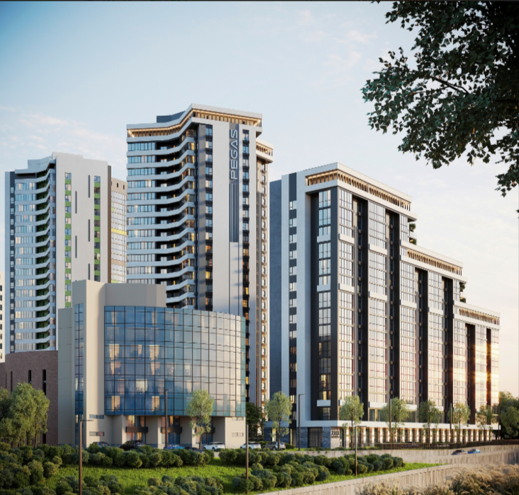 На верхних этажах есть квартиры с террасами и панорамным видом на город.