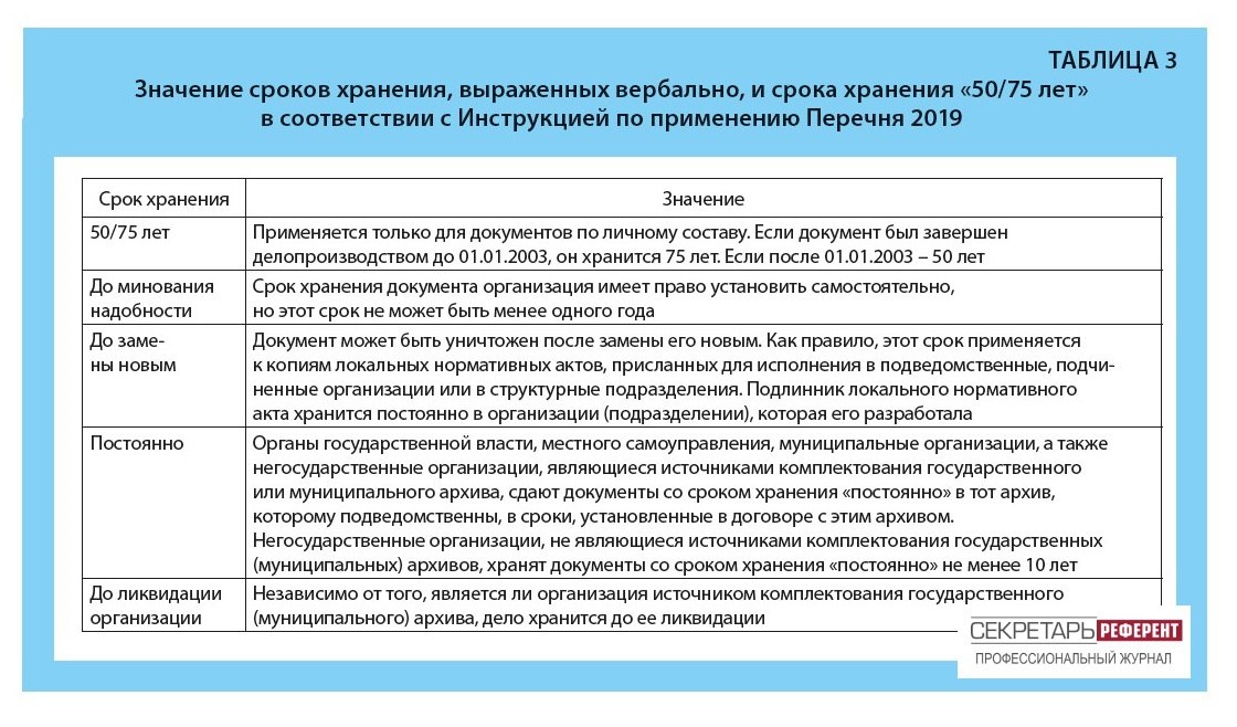 Шпаргалка 8 Значение некоторых сроков хранения Часть сроков в Перечне 2019 сформулирована вербально, и эти значения нужно уметь «читать». Значения «неоднозначных» сроков хранения в соответствии с Инструкцией по применению Перечня 2019 приведены Таблице.