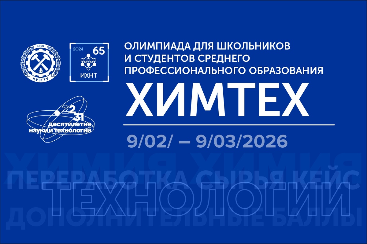 Институт химических и нефтегазовых технологий КузГТУ проведёт олимпиаду по химии и химической технологии «Химтех». К участию приглашаются ученики 9–11 классов и студенты учреждений среднего профессионального образования. Олимпиада направлена на выявление талантливых ребят, способных применять научные знания для решения реальных инженерно-технологических кейсов. Интеллектуальное соревнование проводится в два тура: Отметим, что I тур стартует 9 февраля и продлится до 9 марта 2026 года. Участникам предстоит выступить в роли экспертов-технологов и выполнить кейсовое задание — предложить наиболее эффективный способ переработки заданного сырья в готовый продукт. Чтобы принять участие в I туре, нужно ознакомиться с Положением об олимпиаде и инструкцией, после чего перейти на страницу курса олимпиады и пройти регистрацию. Информацию об олимпиаде также можно посмотреть по ссылке. Победители и призеры будут награждены дипломами, а также они получат дополнительные баллы к результатам ЕГЭ при пост