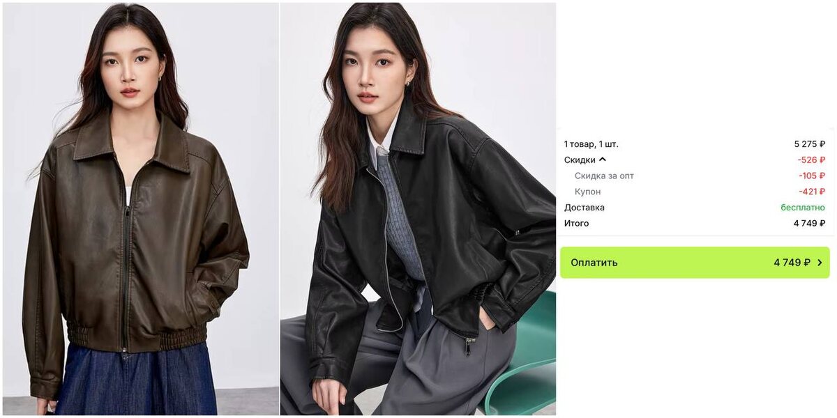А ещё от Sentubila в «часе выгоды» есть вот такая кожаная куртка-бомбер из 100% вискозы - а мы все помним, что это лучший вид иск.кожи🤌🏻
