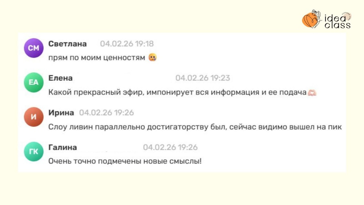 Модные тренды: в чём истинный смысл. Новая система обучения в IDEA-class» готова! 🔜 Смотреть на Youtube 🔜 Смотреть на Rutube Поговорили о том, что важно знать в 2026 году, чтобы не остаться в «отцепленном вагоне» от поезда мировых тенденций: 🟡Какие глобальные тренды влияют на нас уже сейчас и будут только набирать обороты. 🟡Какие архетипы сейчас отражают сдвиги в общечеловеческих ценностях и как это проявляется в жизни. Дали советы: ✅Экспертам, консультантам, контент-мейкерам — как следовать этим трендам, не теряя своей и аутентичности ✅Стилистам и дизайнерам — как воплощать актуальные тенденции — с конкретными наглядными примерами. ✅Всем — что делать, чтобы научиться самим чувствовать, предсказывать тренды! ✨На примере школы IDEA-class показали, как адаптироваться к изменяющемуся контексту и оставаться актуальными, сохраняя свои ценности и глобальную идею — и презентовали новую систему обучения — Библиотеку материалов. Успех, удовлетворенность и реализация зависят от того, на