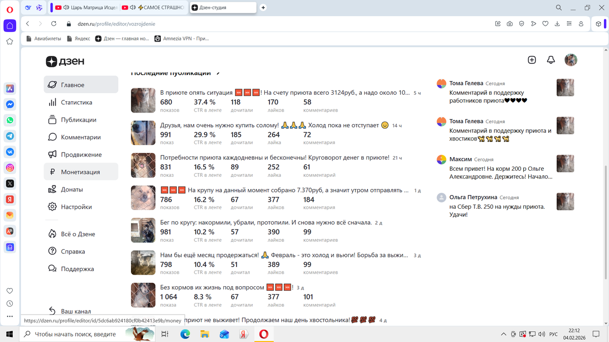 У нас монетизации нет, не принципиально, из за копеек ругаться, но от количества просмотров зависят дальнейшие показы наших постов, потому и решила это написать, может кому то из блогеров тоже будет интересно! Странна статистика теперь у дзена, исчезают даже показы! Пишу в поддержку, отвечают, что просмотры убирают, прочтений как бы стало меньше по их регламенту, но как можно убрать показы из статистики, это полный песец!